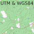 Cálculos topográficos para UTM y WGS84. Cuadrícula en el mapa.